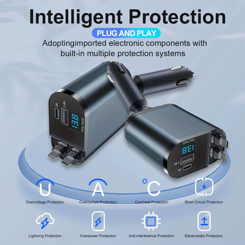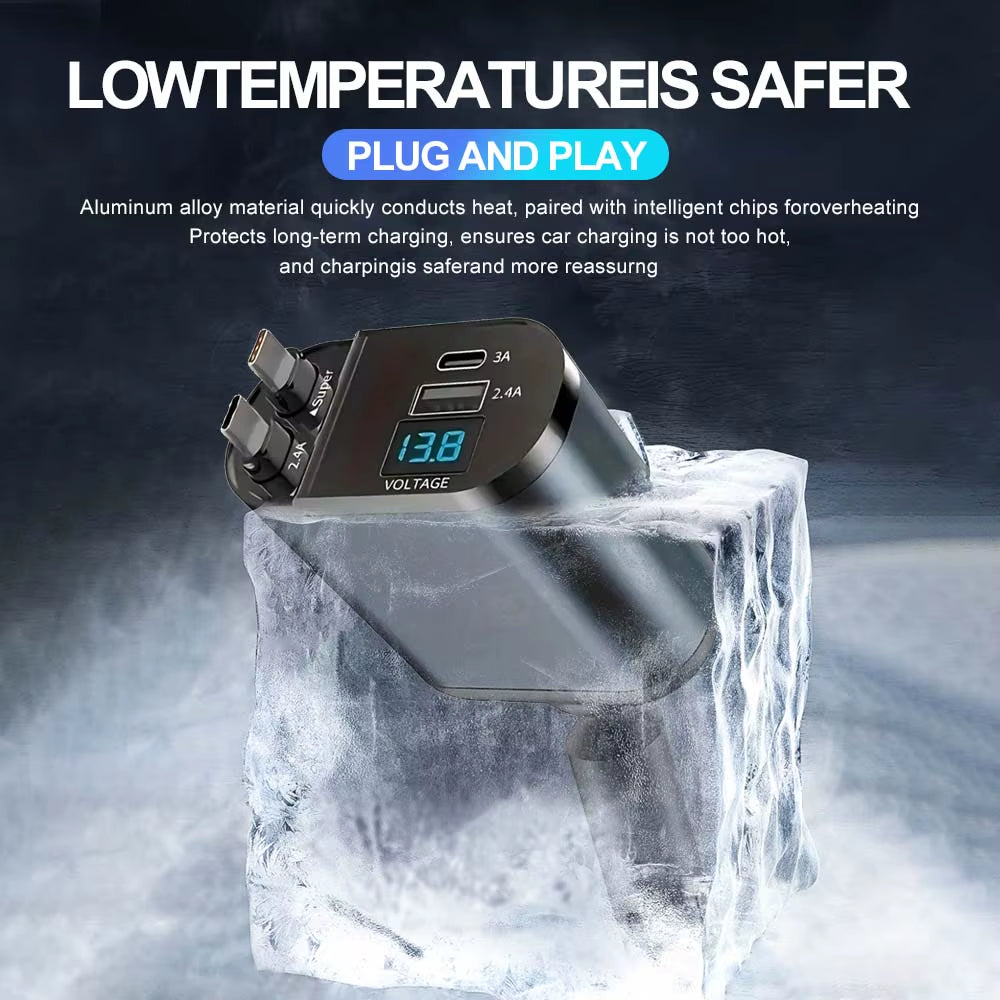 Voltrush™ 4-In-1 Retractable Car Charger – Fast Power, Zero Clutter